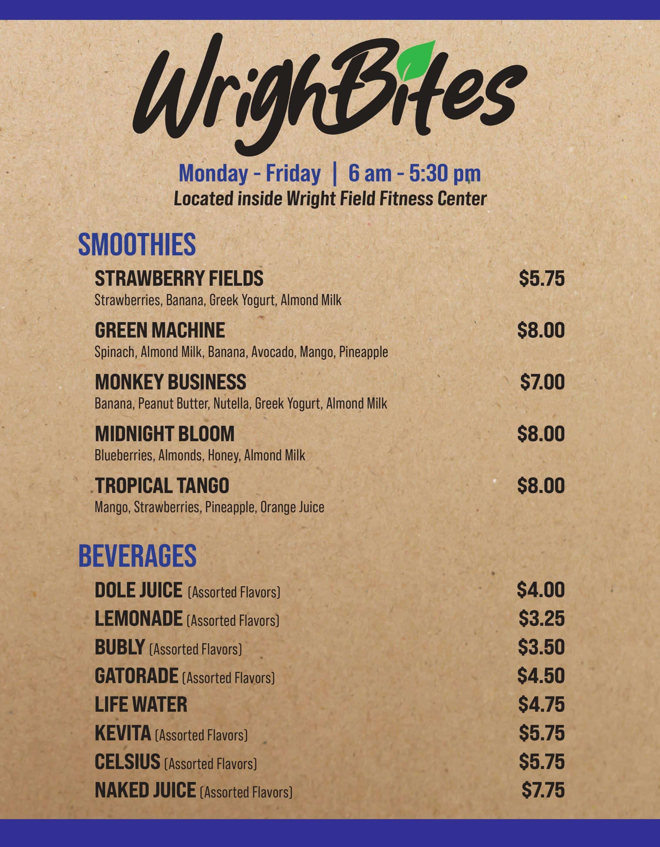 Located inside Wright Field Fitness Center at 2690 C Street, Bldg 571 Area B, Wright-Patterson AFB, Ohio 45433